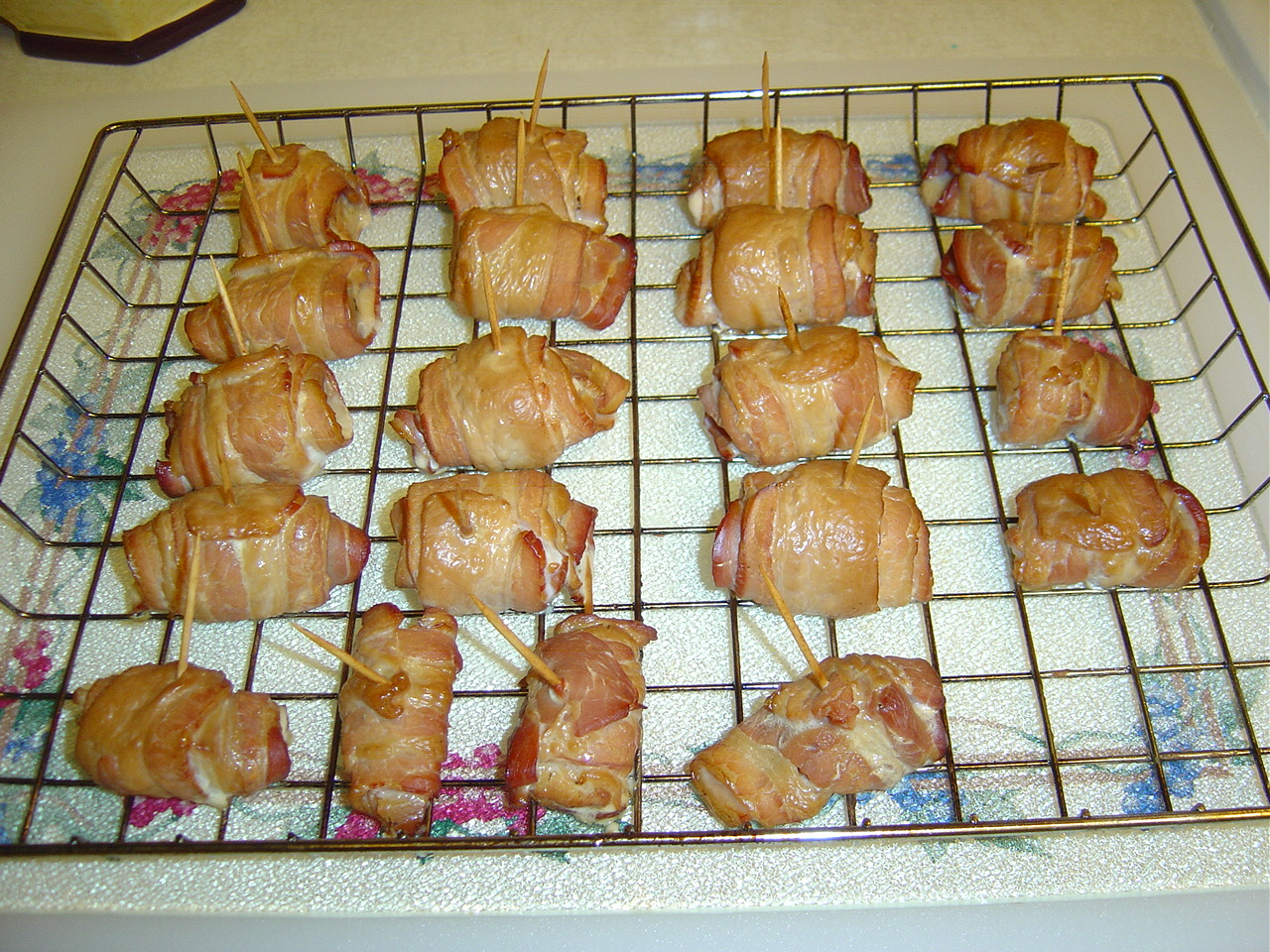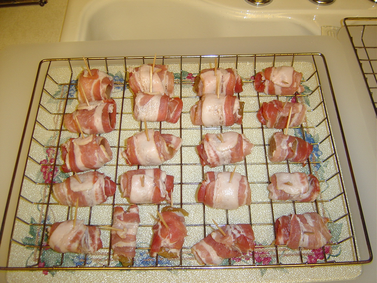 - Slice fish into 2" chunks, then wrap with bacon strips.